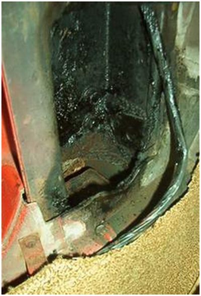 Check the frame for rot in front of the rear wheels.