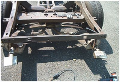 1.) Parking brake cable and brackets from under seat area 2.) Shifter cable and down shift wire (automatic) and speedometer cable 3.) Battery ground strap from frame 4.) Rocker moldings 5.) Seats (to lessen the weight)