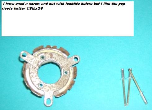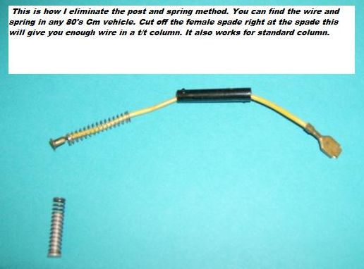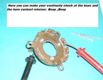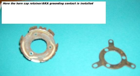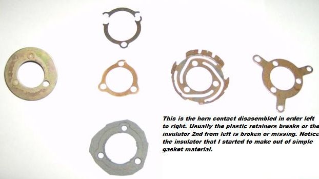 Horn Retainer Fix Here is my tip for fixing the horn retainer by eliminating the horn contact post and replacing it with a spring and wire. Yes, it is only a $20.00 item but any place you can save and fix it your self is a good thing. The horn cap retainer is a weak design, held together with plastic rivets. The key to this repair is the plastic bushings that can be found at any Ace Hardware store. I made a new insulator gasket out of plain gasket material as the old insulator usually is broken or missing. I guess the temperature spikes has a lot to do with it coming apart. I have used screws and nuts with locktite to hold it all together but have found pop rivets to be a lot cleaner. I have also eliminated the post and spring with a wire and spring. The pictures below will hopefully help with your repair.