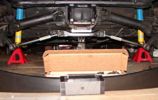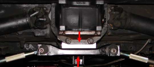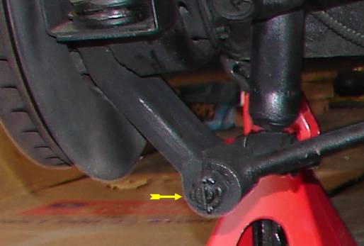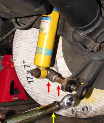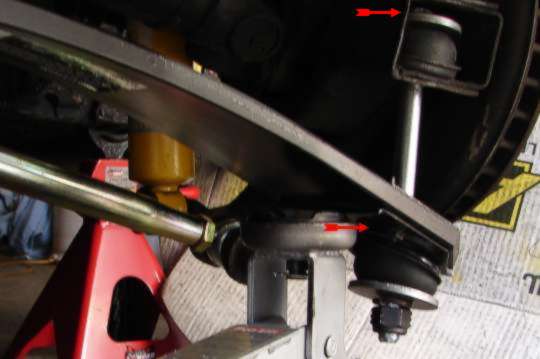 Next I installed the aluminum spacer that goes between the strut bracket and differential, (RED arrows).