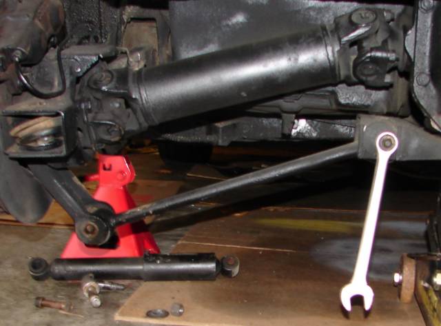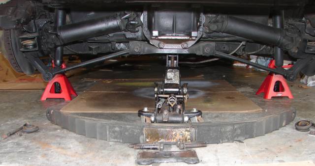 Next, I loosened the 4 big bolts holding the spring to the rear end.